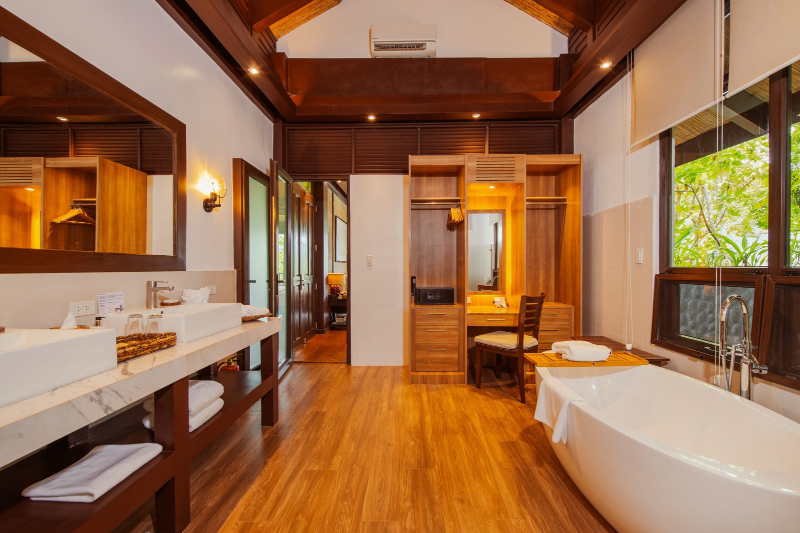 Perched on the forest of Lihim, our seaview villas offer an unrivaled experience of seaside serenity and breathtaking vistas. This well-appointed private space with wrap around balcony is configured with one king-sized bed. Ideal for romantic getaways, features like the indoor and outdoor shower as well as an outdoor bath enhance intimate encounters in paradise.